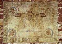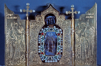 Textile: Man of Sorrows with Virgin and John the Evangelist