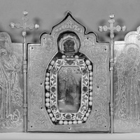 The triptych and onyx brooch are separable. It appears that the triptych can be closed as well though Forsyth and Weitzmann only documened it open. Potential designs on the front of the wings or reverse have not been photographed.