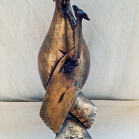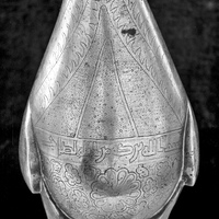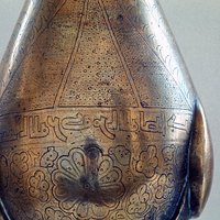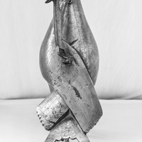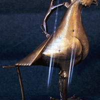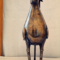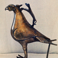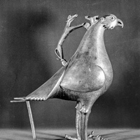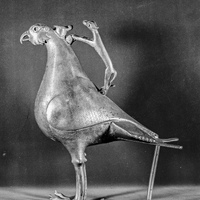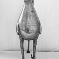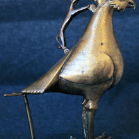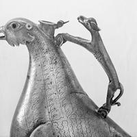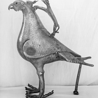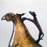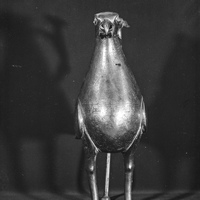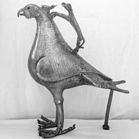 - Aquamanile in the shape of bird. Engravings indicate plummage. Canine figure features as handle.